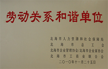 2010年以來,中電北海產(chǎn)業(yè)園深入開展“勞動(dòng)關(guān)系和諧單位”活動(dòng),取得了良好收效,近日,中國電子北海產(chǎn)業(yè)園發(fā)展有限公司獲得北海市人力資源和社會保障局、北海市總工會、北海市企業(yè)管理協(xié)會/北海市企業(yè)家協(xié)會、北海市工商業(yè)聯(lián)合會四家單位聯(lián)合授予的“勞動(dòng)關(guān)系和諧單位”稱號。
