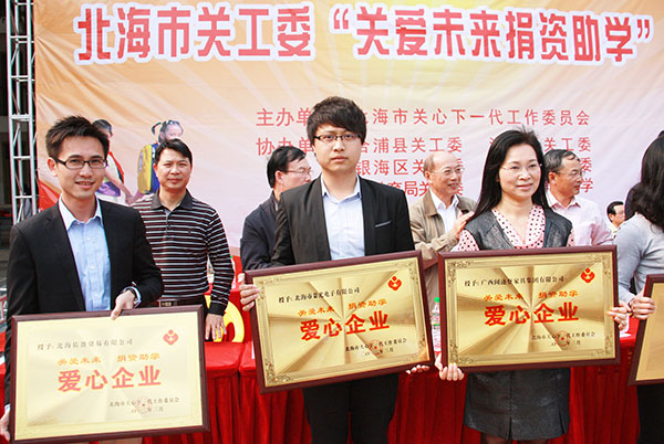 園區(qū)企業(yè)北海景光電子有限公司榮獲了“愛心企業(yè)”榮譽稱號,這是繼去年景光電子捐贈“女警護學崗”的又一獻愛心活動,同時是園區(qū)鼓勵企業(yè)積極響應對“關(guān)愛未來捐資助學”的具體舉措。