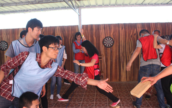 參加人員被隨機(jī)分為三支隊伍,各隊經(jīng)過團(tuán)隊風(fēng)采展示及熱身小游戲互動后,初步形成熱烈的氛圍,為接下來的“破冰啟航”、“冰海沉船”、“七巧板”、“真人CS對戰(zhàn)”四個拓展項目做準(zhǔn)備。在各自隊長的帶領(lǐng)下,每一位隊員都積極發(fā)揮才智,不斷總結(jié)經(jīng)驗,最終找到了走向成功的方法,完成了任務(wù),從中實現(xiàn)自我突破,增強(qiáng)自信心與勇氣。培訓(xùn)結(jié)束前,各隊分別總結(jié)了培訓(xùn)體會,與大家分享了團(tuán)隊建設(shè)經(jīng)驗。