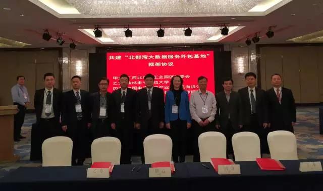 乘著北海市委務(wù)虛會的東風(fēng),2017年1月8日,在自治區(qū)工信委徐莉青副主任、北海市委常委、副市長曾子祥,桂林電子科技大學(xué)校長古天龍等領(lǐng)導(dǎo)見證下,清華大學(xué)國家服務(wù)外包人力資源研究院與桂林電子科技大學(xué)、北海工業(yè)園區(qū)管委會、中國電子北海產(chǎn)業(yè)園公司在深圳簽署合作協(xié)議,建設(shè)北部灣大數(shù)據(jù)及服務(wù)外包基地,標(biāo)志著以軟件及信息服務(wù)業(yè)為主導(dǎo)產(chǎn)業(yè)的中國電子北部灣信息港進(jìn)入新的發(fā)展階段。