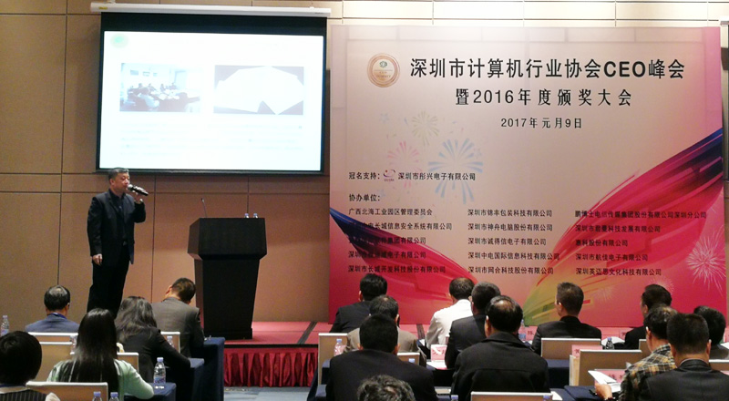 2017年1月9日,深圳市計(jì)算機(jī)行業(yè)協(xié)會CEO峰會暨2016年度頒獎(jiǎng)大會隆重召開,作為北海電子信息產(chǎn)業(yè)的基礎(chǔ)核心、優(yōu)秀產(chǎn)業(yè)園區(qū)運(yùn)營商的中國電子北海產(chǎn)業(yè)園發(fā)展有限公司當(dāng)選深圳市計(jì)算機(jī)行業(yè)協(xié)會副會長單位,索耀宗總經(jīng)理當(dāng)選為協(xié)會第九屆理事會副會長。