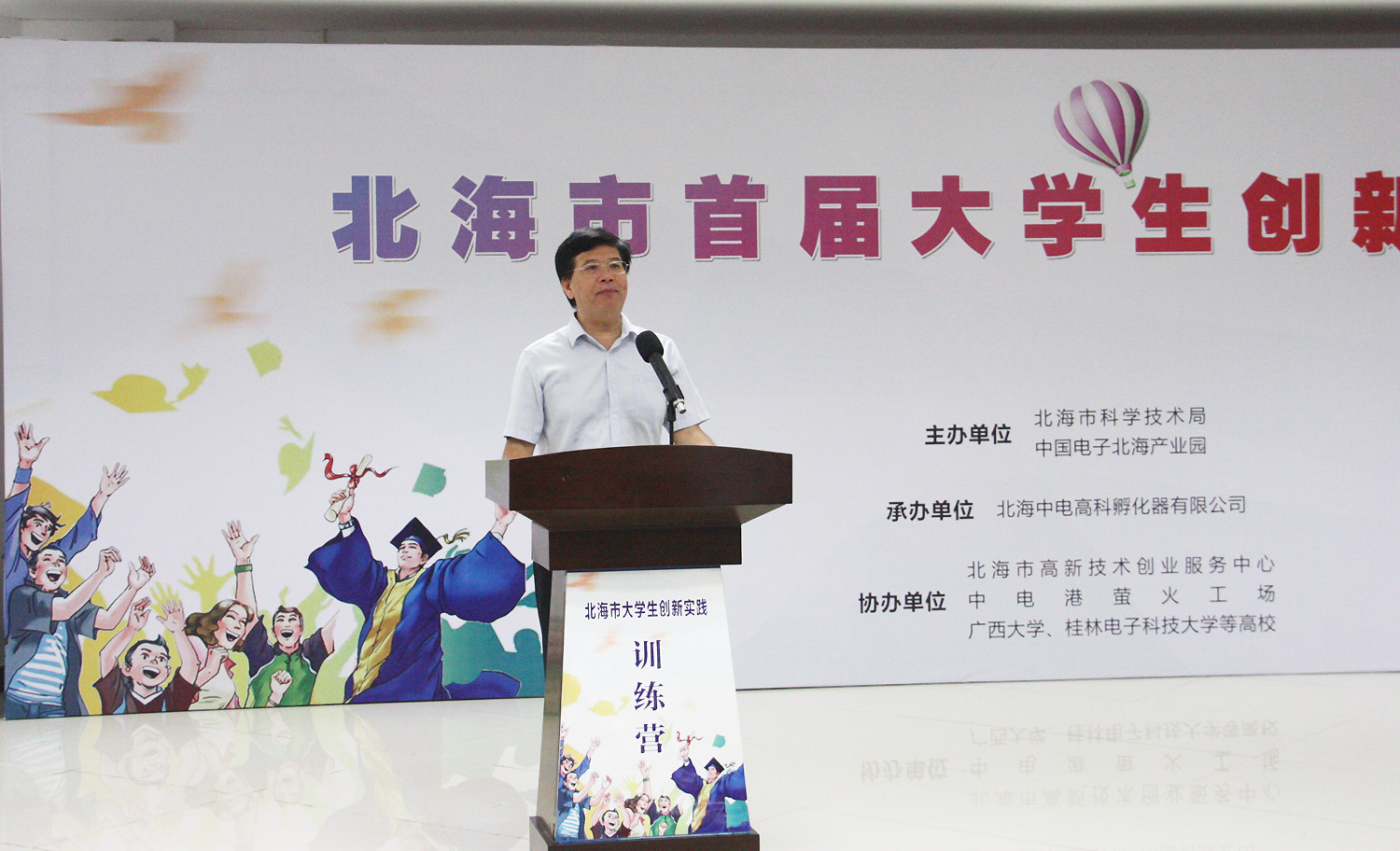 2017年8月15日,北海市首屆大學生創(chuàng)新實踐訓練營在中國電子北海產(chǎn)業(yè)園舉行開營儀式,北海市常務副市長陳維出席了開幕式,并宣布訓練營開營。