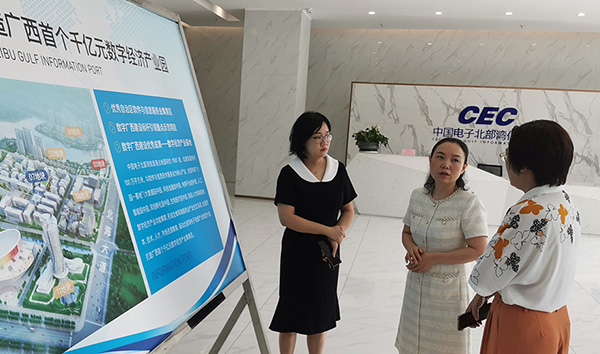 2023年7月19日上午,北海市市委常委、市紀(jì)委書記劉纓帶隊(duì)到中國(guó)電子北部灣信息港開展“壯大實(shí)體經(jīng)濟(jì)推動(dòng)高質(zhì)量發(fā)展”調(diào)研。中國(guó)電子北海產(chǎn)業(yè)園發(fā)展有限公司副總經(jīng)理劉曉娟現(xiàn)場(chǎng)向劉纓書記匯報(bào)了信息港項(xiàng)目建設(shè)、運(yùn)營(yíng)情況。